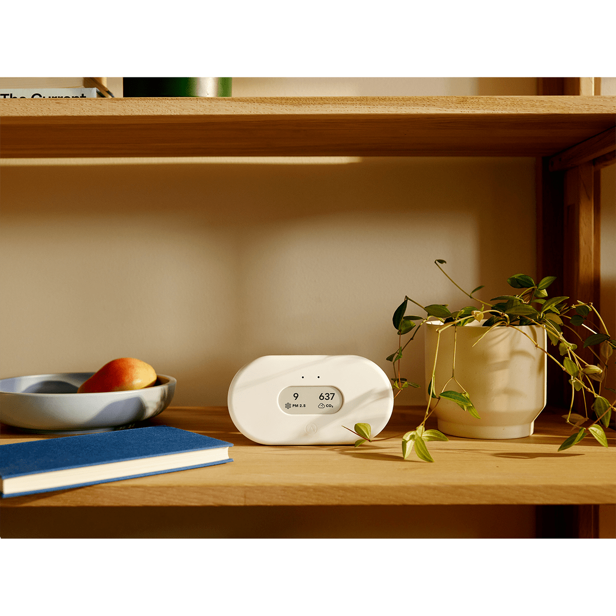 This model, similar to other Airthings air quality monitors, is equipped with a color-coded indicator that shows the overall air quality with a green – good, yellow – fair, or red – poor, light. View outside pollutant levels on the product display and receive notifications as well as tips and insights on the free Airthings App.