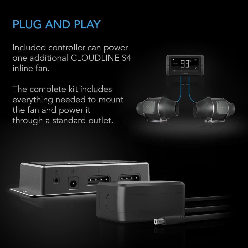 Gone are the days of having to make adjustments to your airflow based on changing room conditions. Equipped with a smart controller, the AC Infinity AI-CLT10 can be programmed to automatically adjust the fan speed in response to changes in humidity levels. Equipped with backup memory, the unit can run continuously or run at specific speeds when powered.