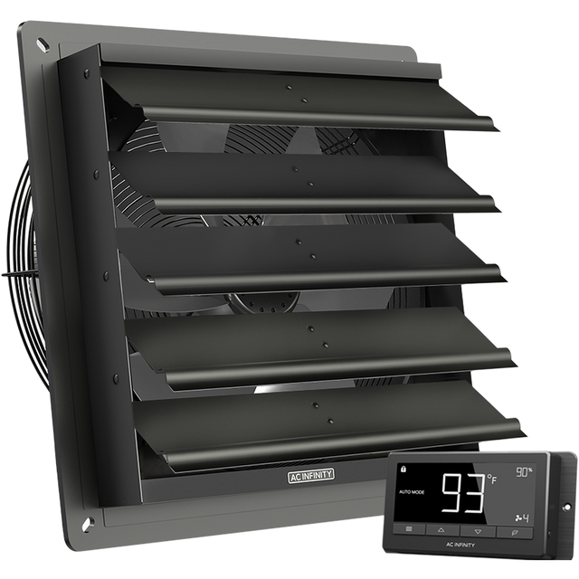 AC Infinity AIRLIFT 16-inch Shutter Ventilation Fans are made from high-quality, durable materials, and feature an EC-motor for greater stability and less noise. Available with either an 8-speed controller or programmable temperature & humidity controller.