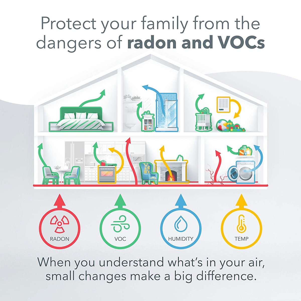 Airthings House Kit includes everything you need to monitor your indoor air quality, and manage them all from your smart device. Connected monitoring for multi-room coverage includes radon detection, TVOC monitoring, plus temperature and humidity data.