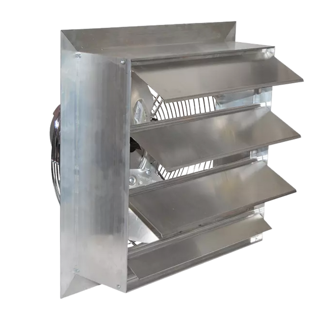 - Built-In Shutters: Shutters open when the fan starts and close when it stops, blocking wind, rain, and pests from entering the building.