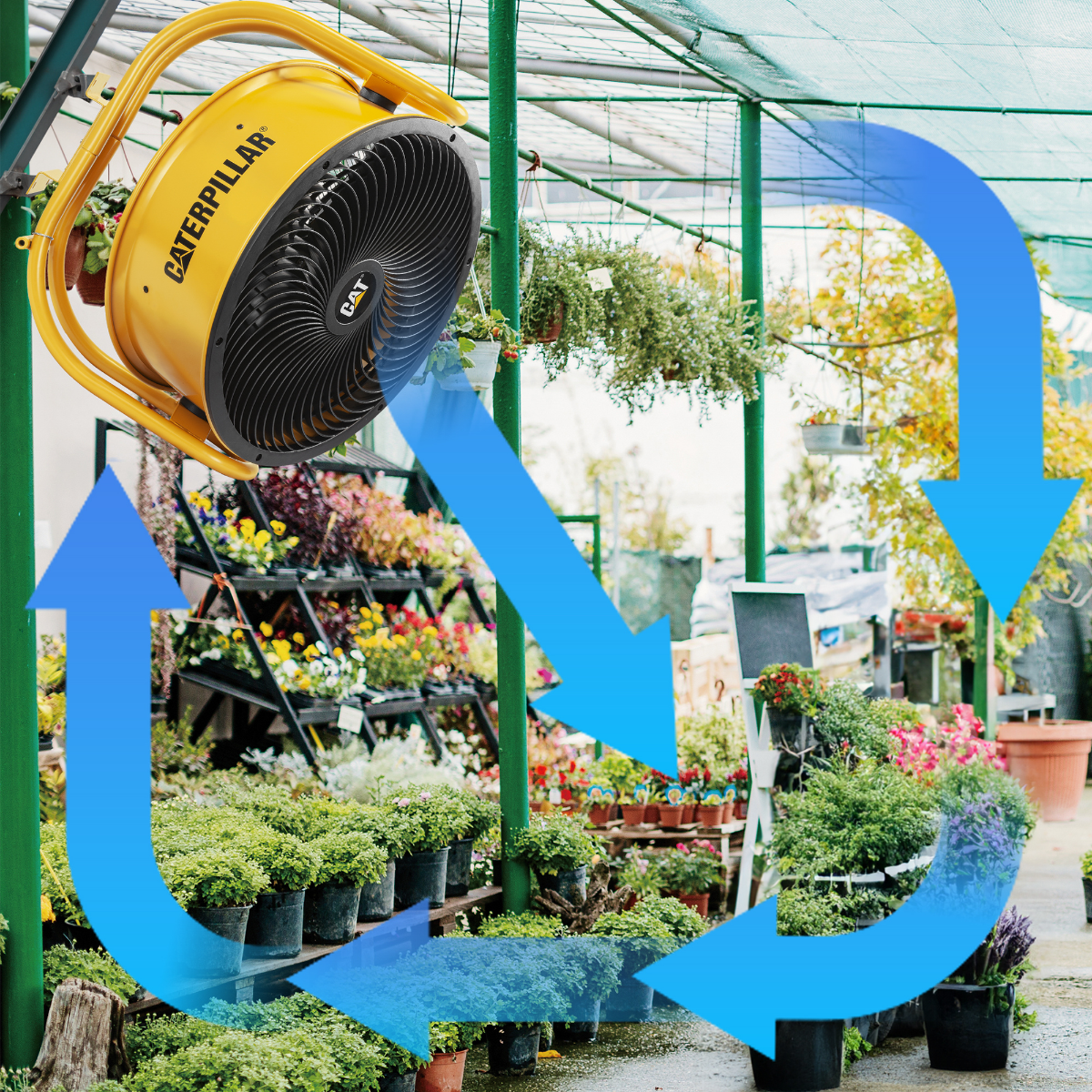 The Caterpillar 24-inch High Velocity Industrial Drum Fan is designed for heavy-duty industrial use in large warehouses, auto repair shops, construction sites, and more.