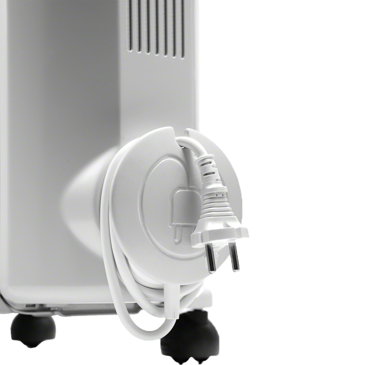 This portable oil-filled radiator is designed for long-lasting heat in medium-sized rooms.