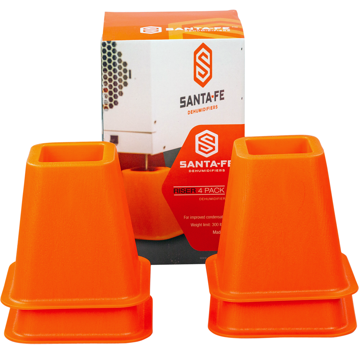 Original Dehumidifier Risers from Santa Fe are designed to elevate your Santa Fe dehumidifier to enhance draining through the condensate line. This added elevation of 6 inches also facilitates installation of a condensate drain trap or pump if needed.