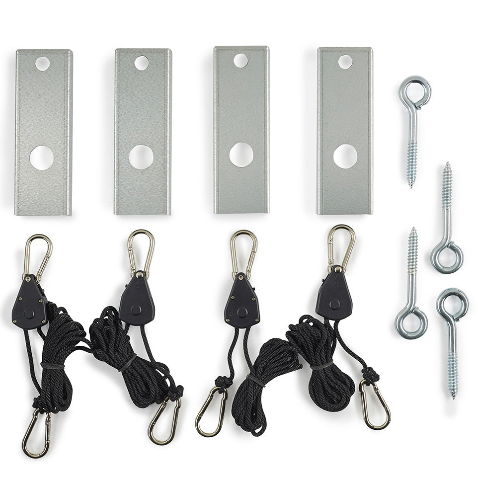 This dehumidifier hanging kit is designed to easily suspend your dehumidifier in an attic or crawl space setting. With the brackets and eye bolts positioned horizontally on floor joists, this kit can safely hold a load of up to 200 pounds. Choosing to elevate your dehumidifier can help improve airflow when the unit is centrally located vertically—and if you are gravity draining it, there is more slope allowed on the condensate line if the dehumidifier is off the ground.