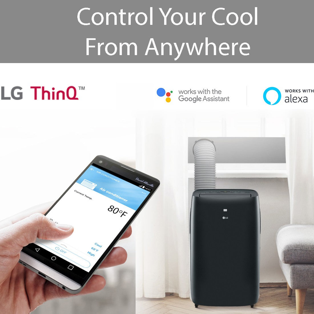 You don't have to be inside your home to control the LP1021BSSM Portable Air Conditioner From LG. Wi-Fi enabled, simply download the LG ThinQ app (iTunes, Google Play) and connect your phone to AC. Once connected you can change the operating mode, adjust the temperature, and more. You can even control it with your voice via Amazon Alexa or Google Home.