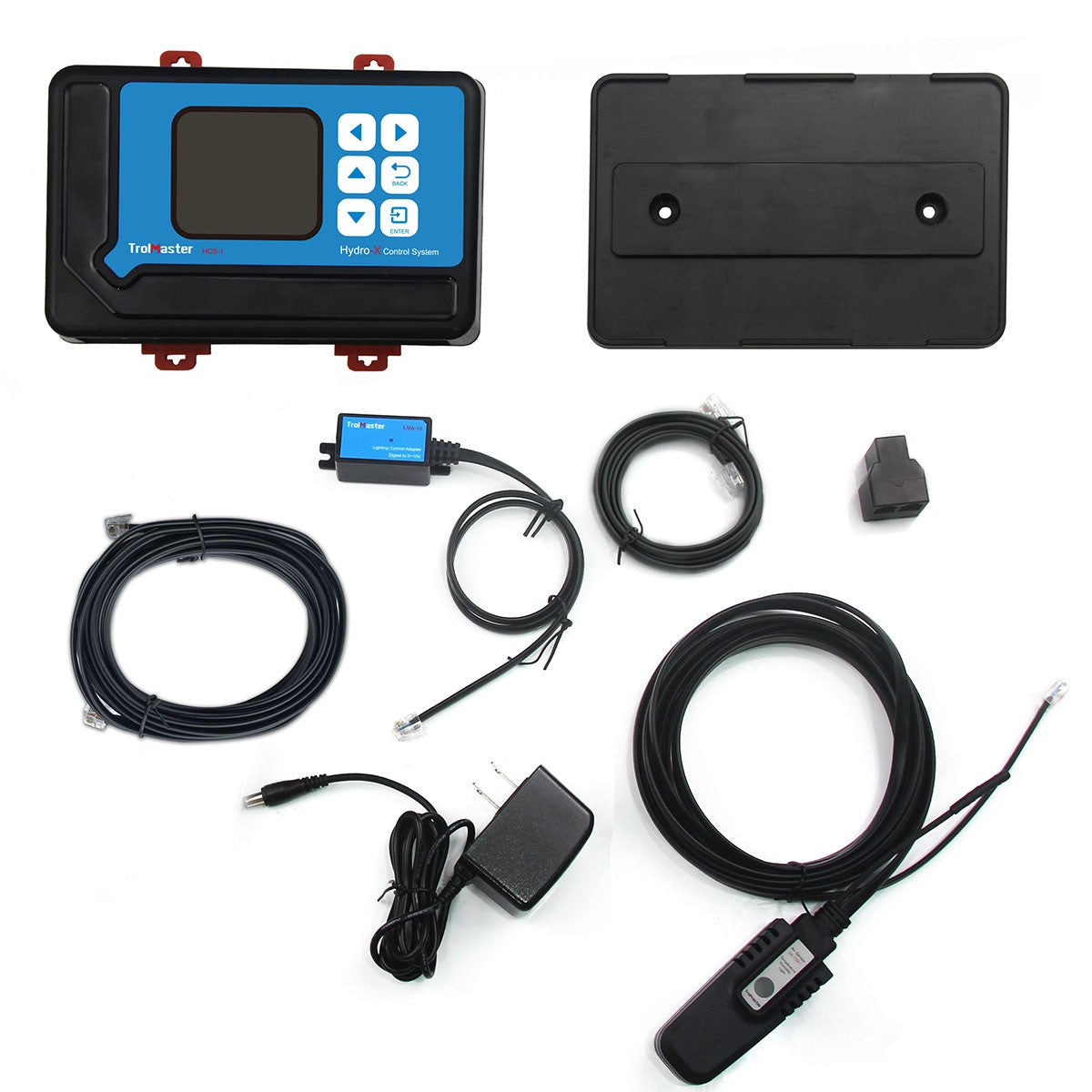 - Cables Included: A 4-ft. RJ12 Cable, 16-st. RJ12 Cable, 12DC power supply, plus a splitter and 3-in-sensor are all included with the Hydro-X controller.
