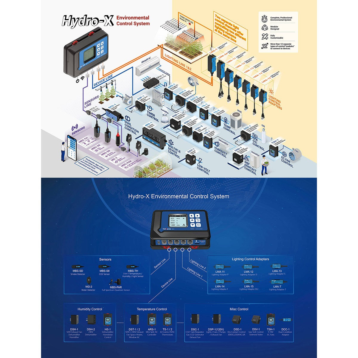 - Modular Design: Design and construct a system customized to suit your specific growing environment. 12 separate types of modules connect devices in one smoothly operating system.