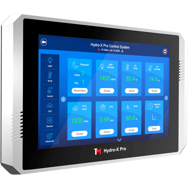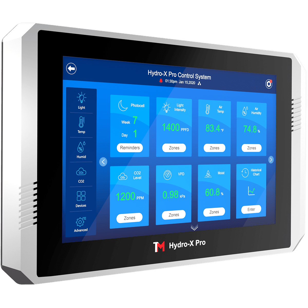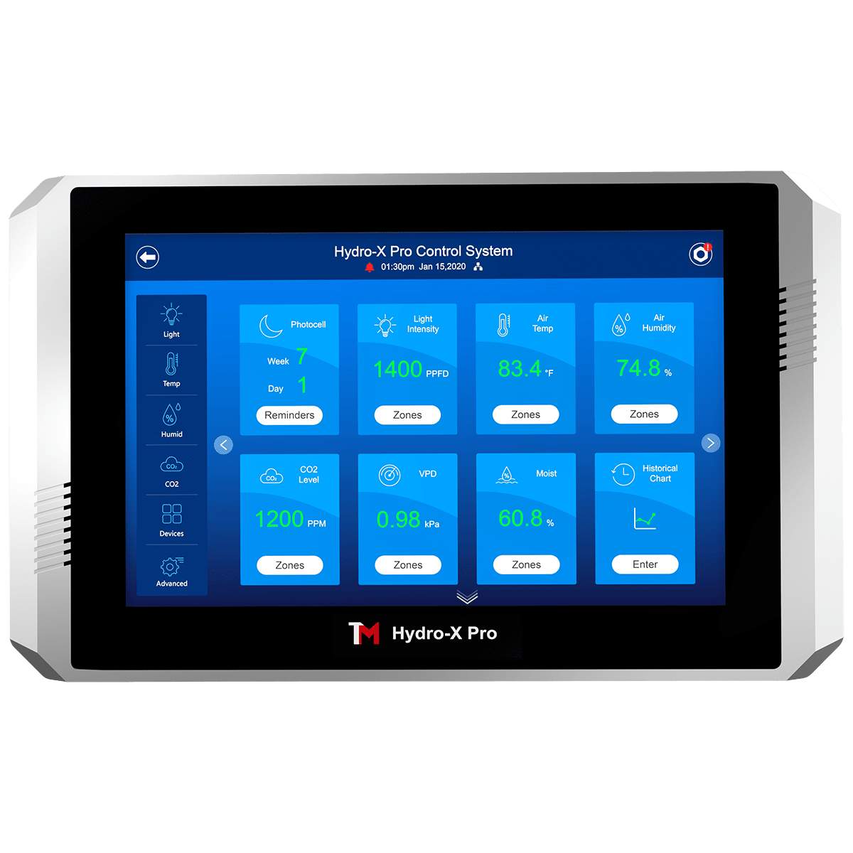 The TrolMaster Hydro-X Pro Environment Control System features web-based program for nearly unlimited settings and control of commercial growing systems. Design and program your growing spaces with up to 50 sensors and 50 separate control modules.