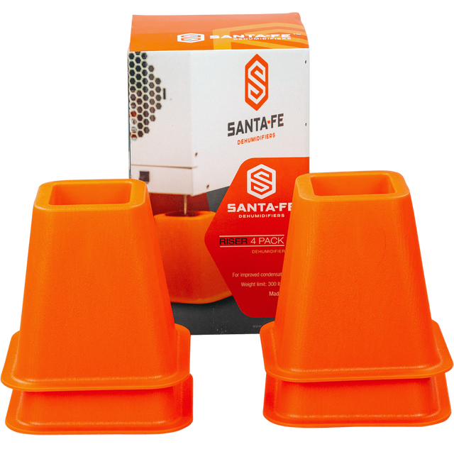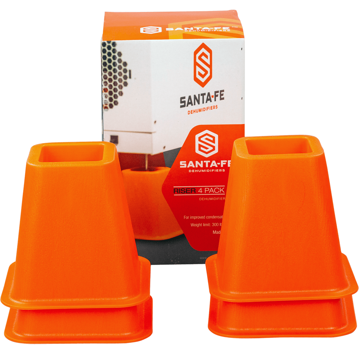 Original Dehumidifier Risers from Santa Fe are designed to elevate your Santa Fe dehumidifier to enhance draining through the condensate line. This added elevation of 6 inches also facilitates the installation of a condensate drain trap or pump if needed.
