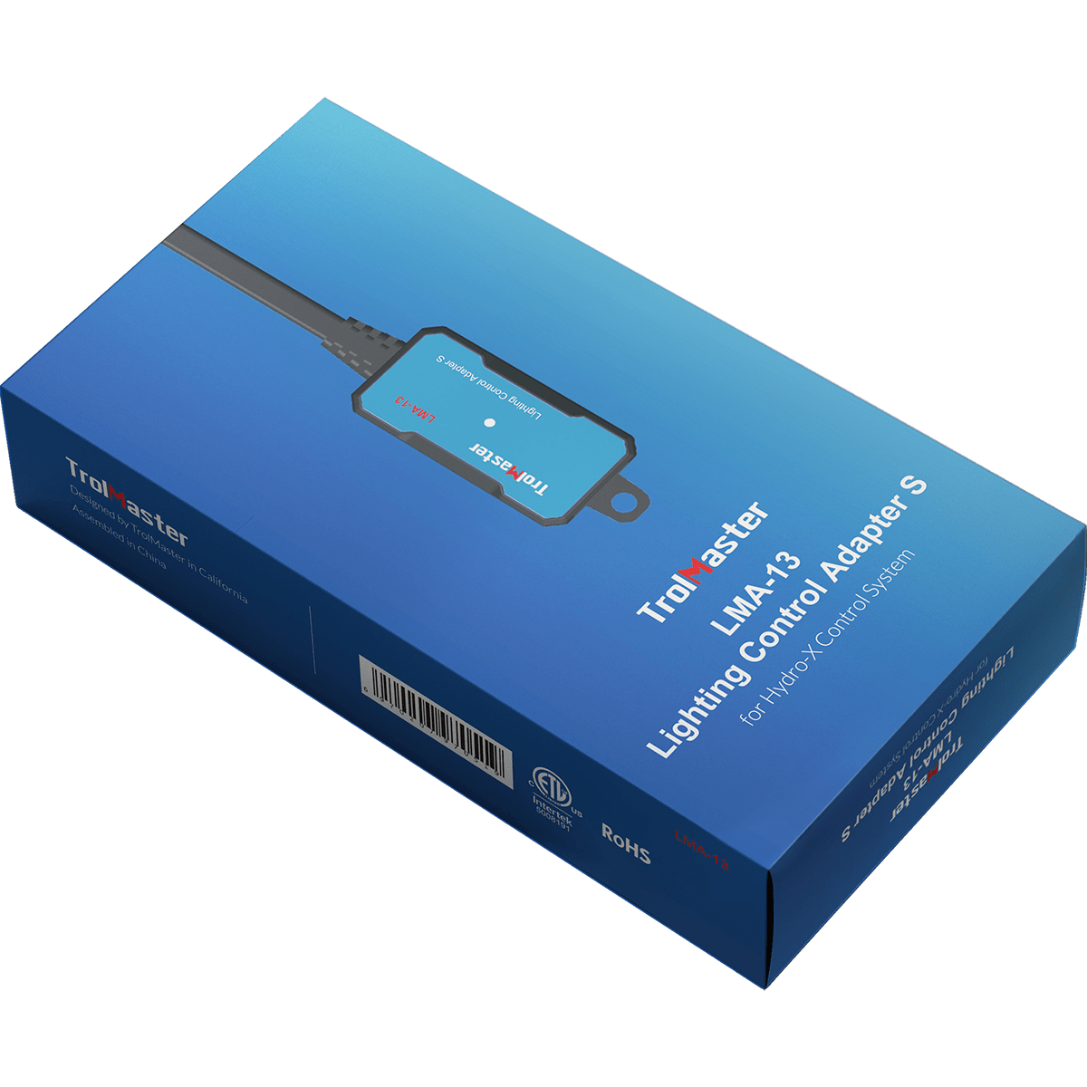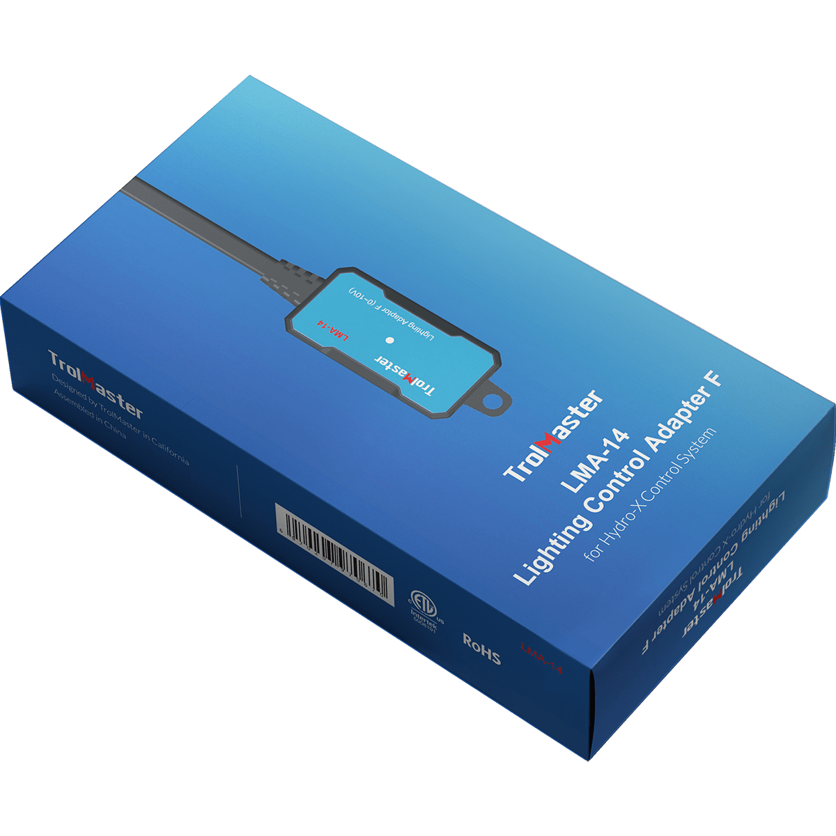Lighting Control Adapter F (LMA-14): The TrolMaster LMA-14 lighting adapter is designed to control HID grow lights from brands like Gavita, Nanolux, Luxx, Growers Choice, Illuminar, PL, and also LED grow lights from Fluence, NextLight, Horticulture Lighting Group (HLG), and Photobio.