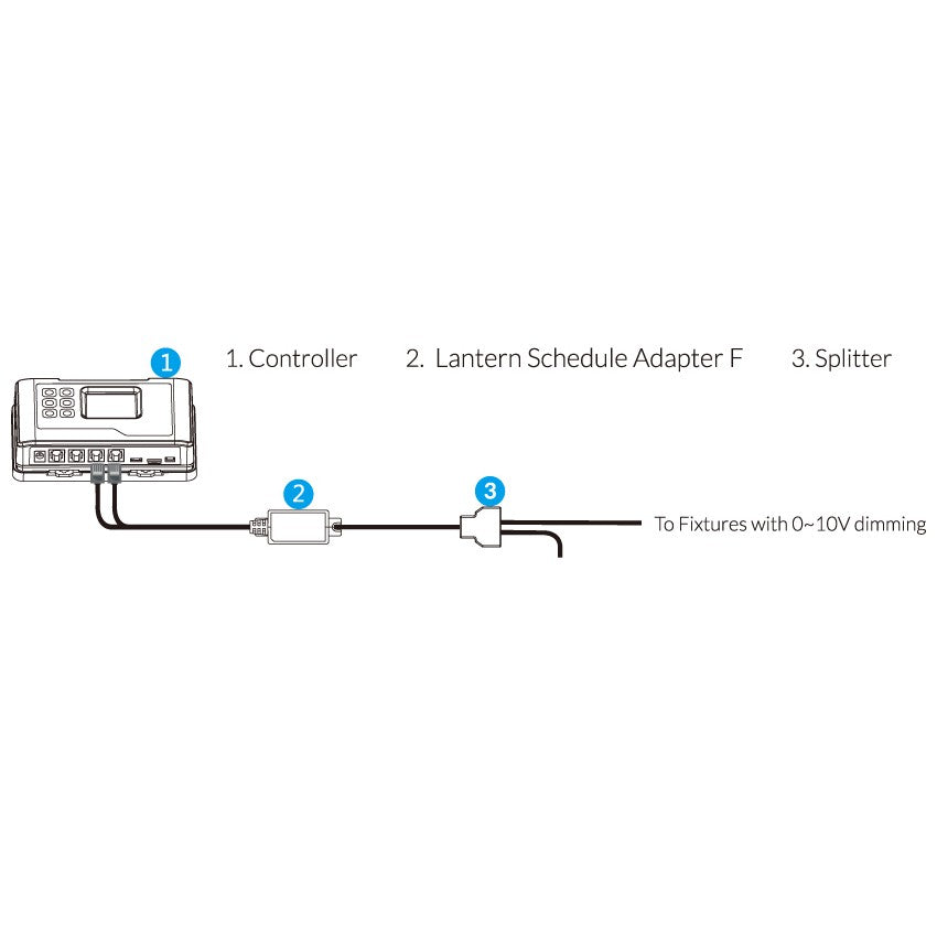 Lantern Schedule Adapter (LMA-24): Provides a lighting routine for vegetative plant growth that follows 12 hours lights on, 5.5 hours lights off, 1-hour lights on, 5.5 hours lights off; then repeating that schedule. This adapter uses both channels on the Hydro-X system to create the lantern schedule for any lights with 0-10V protocol. Compatible HID lights include Gavita, Nanolux, Luxx, Growers Choice, Illuminar, and PL. Compatible LED lights include Fluence, NextLight, and Spectrum King.
