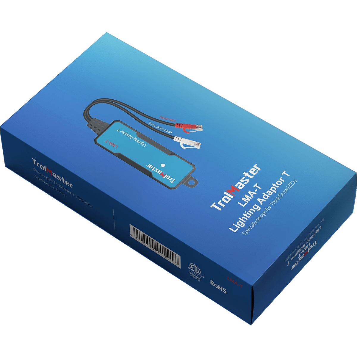 Lighting Control Adapter T (LMA-T): The LMA-T works specifically with ThinkGrow LED systems to provide two channel control for adjusting full spectrum and far-red spectrum output levels. This can be daisy-chained through the LED fixtures back to the controller with one adapter controlling up to 256 ThinkGrow LEDs.